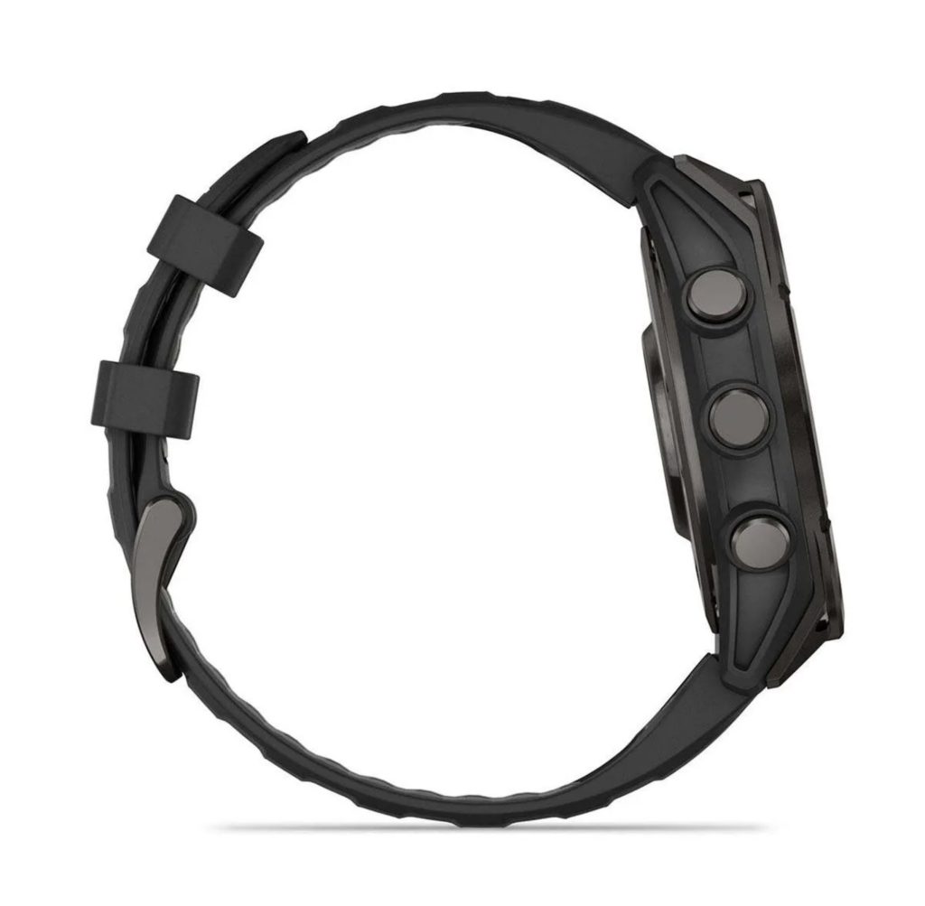 Điểm đắt giá nhất trên Fenix 8 chính là hệ thống Leakproof Inductive Buttons. Thay vì sử dụng cơ chế trục đâm xuyên qua lớp vỏ (vốn dễ bị rò rỉ hoặc kẹt do muối và cát), Garmin đã sử dụng cảm biến điện từ để ghi nhận thao tác nhấn. Điều này tạo ra một “pháo đài” thép kín hoàn toàn, cho phép thiết bị đạt chuẩn lặn 40m. Đây là sự cam kết cao nhất về tính bền bỉ của linh kiện cơ khí trong môi trường khắc nghiệt.
